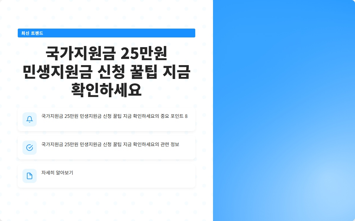 최근 정부는 민생지원금 25만원을 통해 국민의 생활 안정과 경제 회복을 도모하고 있습니다.