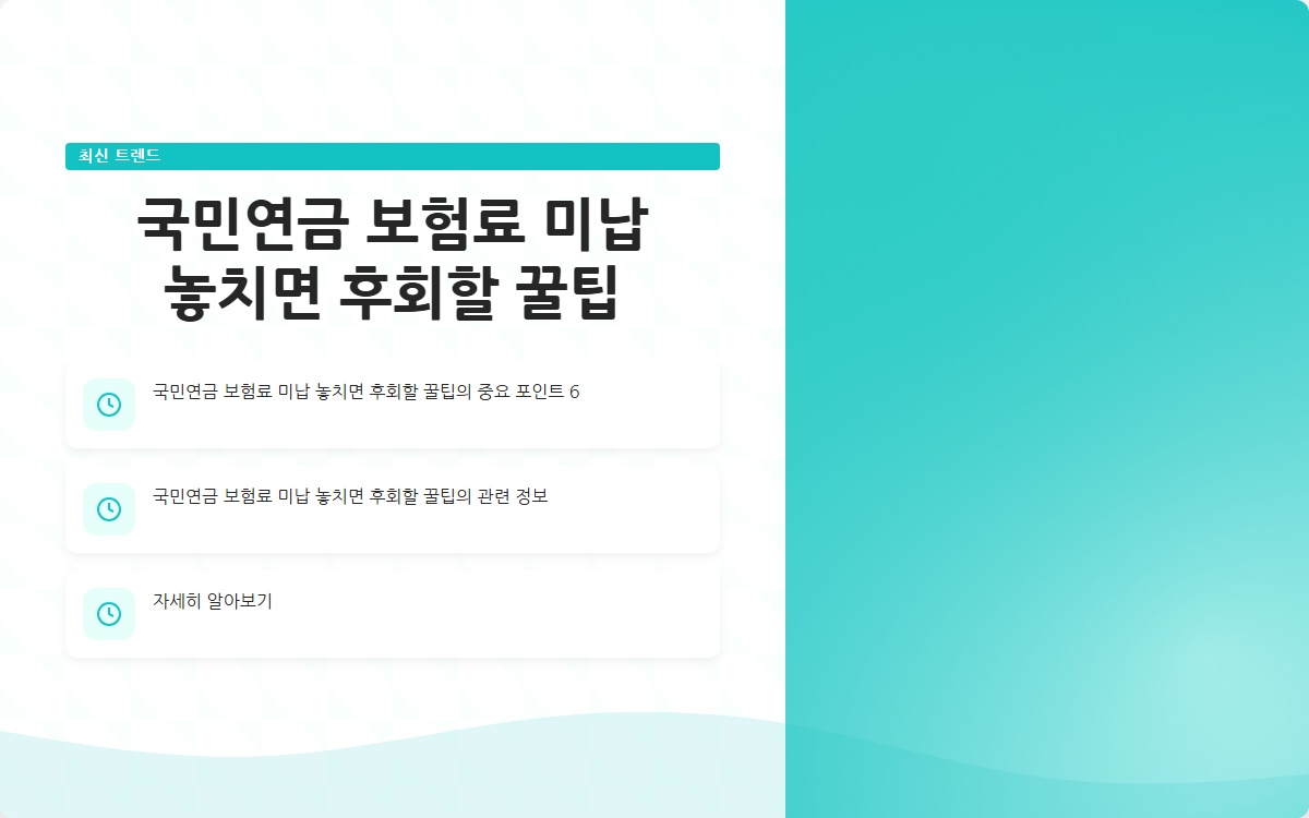 국민연금 보험료 미납, 당신은 지금 그 문제를 고민하고 있나요? 미납으로 인해 발생할 수 있는 심각한 문제들에 대해 알고 계신가요? 이 글을 통해 해결책을 제시할 것입니다! 지금 확인해보세요!