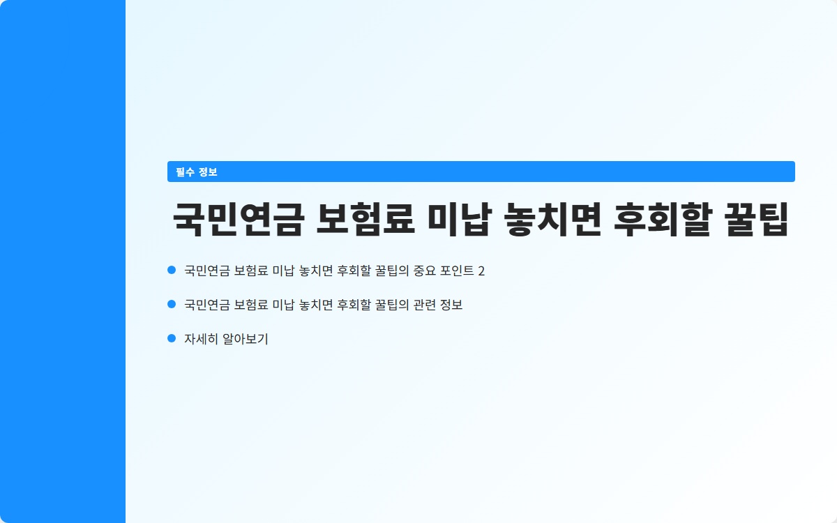 - 정확한 정보 부족: 국민연금에 대한 이해 부족으로 미납 발생