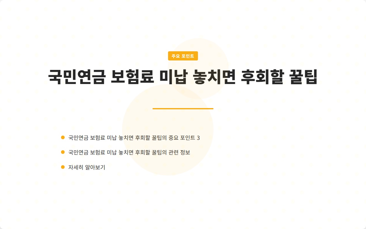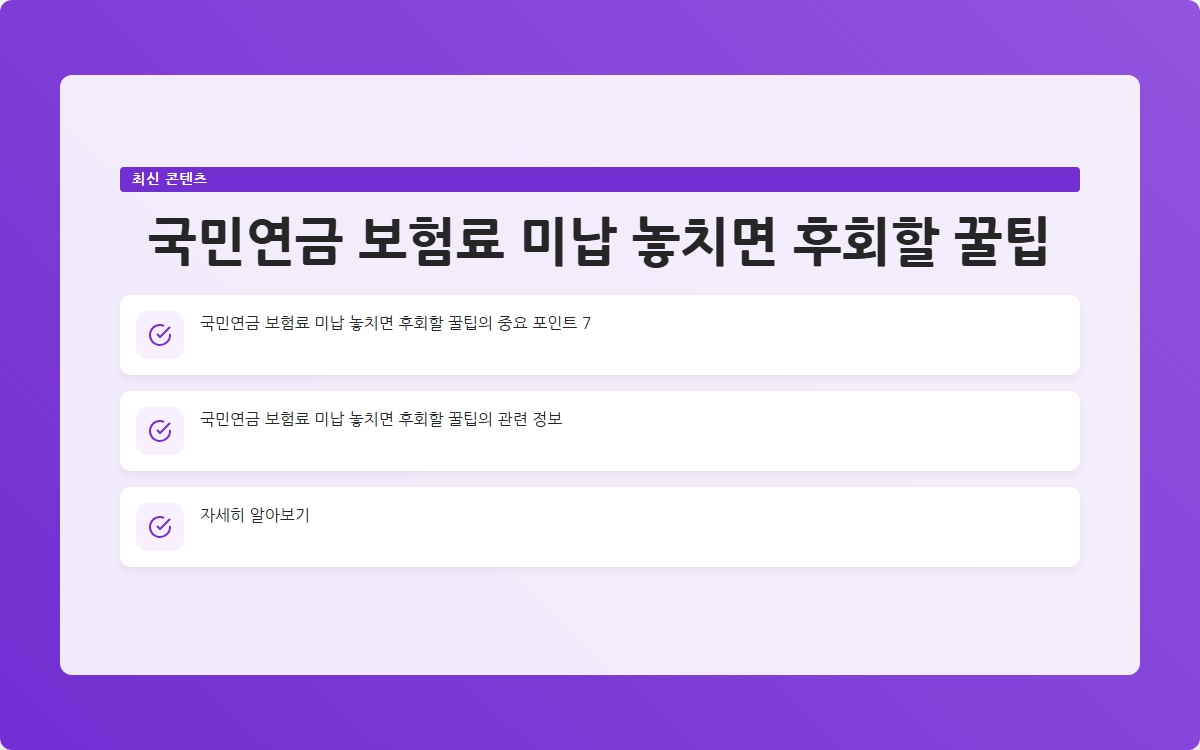 A. 국민연금 보험료 미납을 방지하기 위한 꿀팁은 다음과 같습니다:
