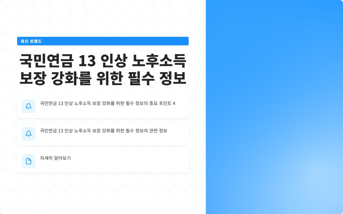 국민연금 13 인상 노후소득 보장 강화를 위한 필수 정보