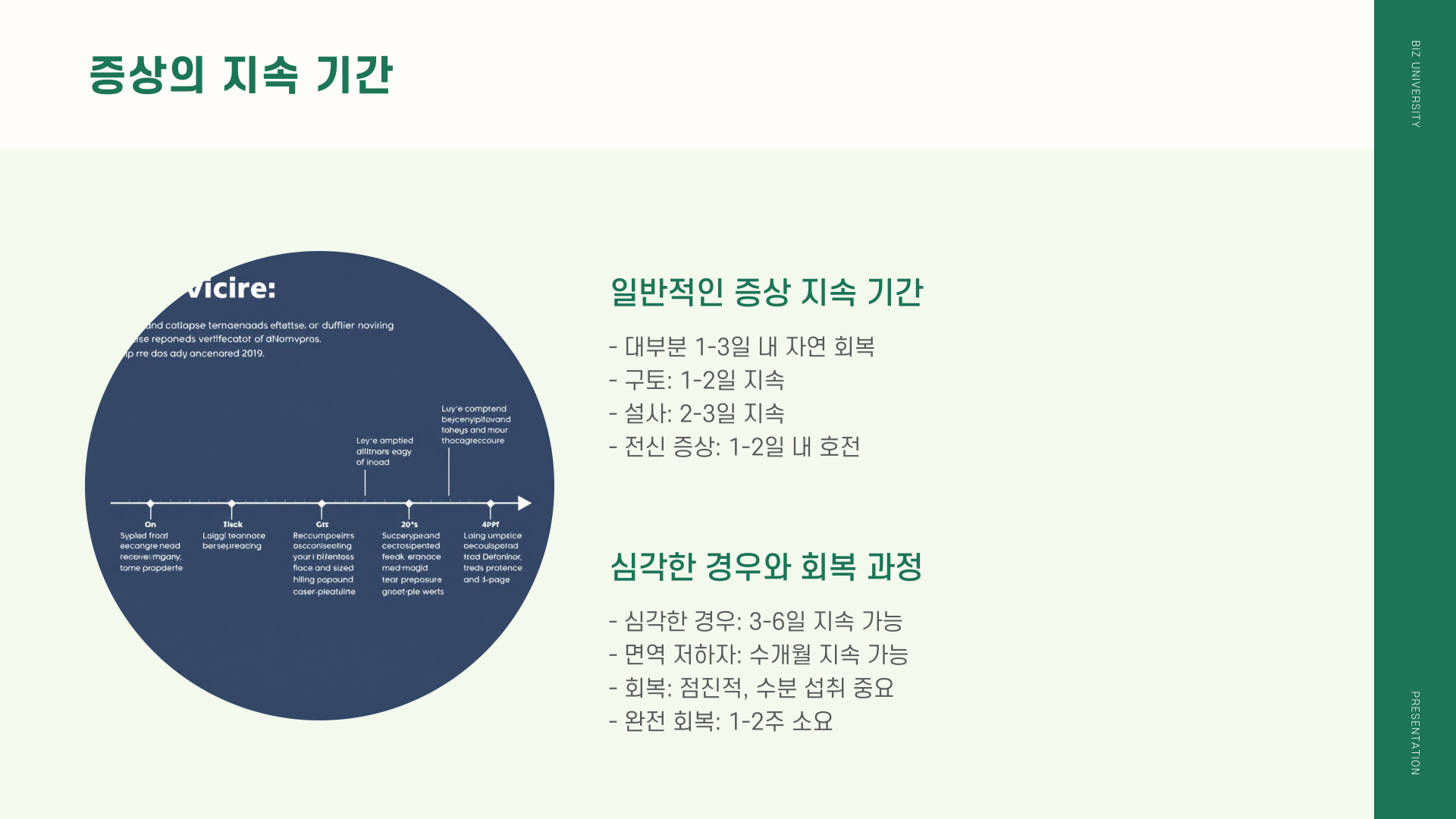 이러한 증상들은 대개 1~3일 이내에 나타나며, 대부분의 경우 자연스럽게 회복됩니다. 그러나 고령자나 면역력이 약한 사람들은 더욱 심각한 증상을 경험할 수 있으므로 주의가 필요합니다.