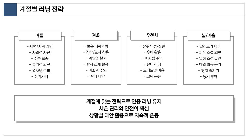 - 균형 잡힌 식단을 유지하고, 운동 후 적절한 영양을 섭취하자.