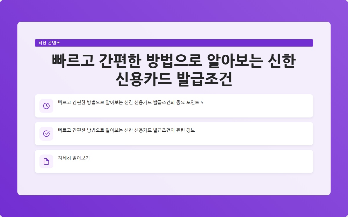 신용카드를 발급 받기 전에 필요한 조건에 대해 알고 계신가요? 신한은행의 신용카드는 다양한 혜택을 제공하며, 발급 조건을 충족하면 누구나 쉽게 신청할 수 있습니다. 이 글에서는 신한 신용카드 발급조건에 대해 자세히 알아보겠습니다.