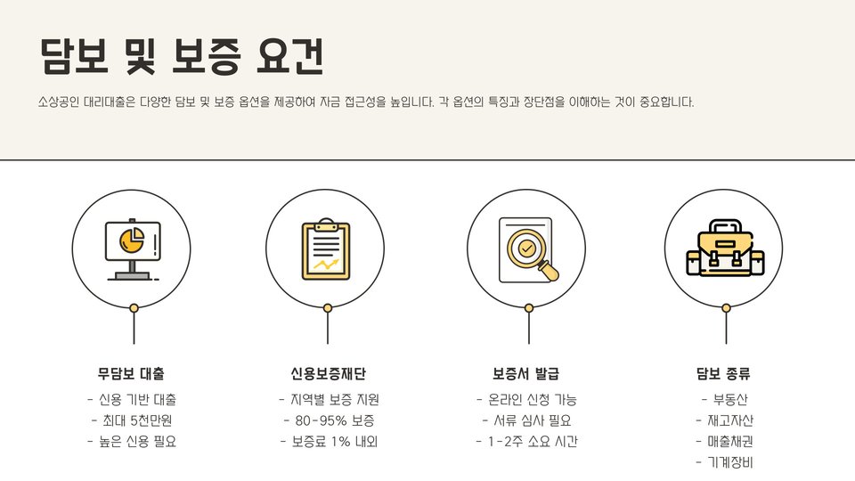 또한, 성장촉진자금과 같은 프로그램은 대리대출 형식으로 제공되어, 보다 유연한 자금 지원이 가능합니다. 이를 통해 기업의 성장 잠재력을 극대화할 수 있습니다. 소상공인들은 자신의 사업 구조와 필요에 맞는 대출 상품을 선택할 수 있어 보다 유리한 조건의 대출을 받을 수 있습니다.