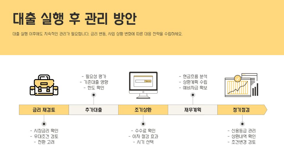 - 대출 조건과 상환 방식을 반드시 확인할 것.