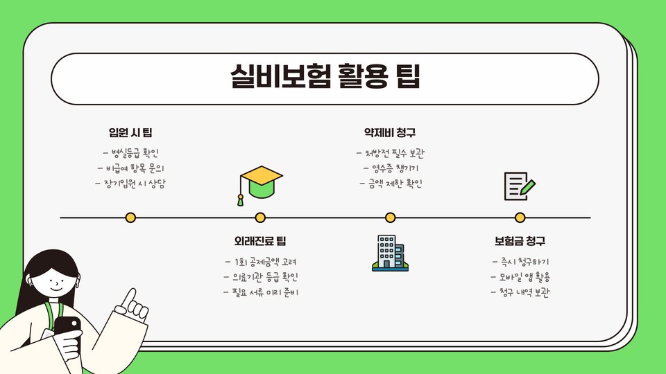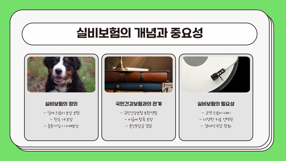 실비보험은 의료비를 보장받을 수 있는 보험으로, 병원 진료비, 약제비, 검사비 등을 보장합니다. 이러한 보험은 예기치 못한 사고나 질병으로 인한 경제적 부담을 줄여주기 때문에 필수적입니다. 특히, 국민건강보험만으로는 충분한 보장을 받지 못하는 경우가 많아 실비보험이 더욱 중요해집니다.