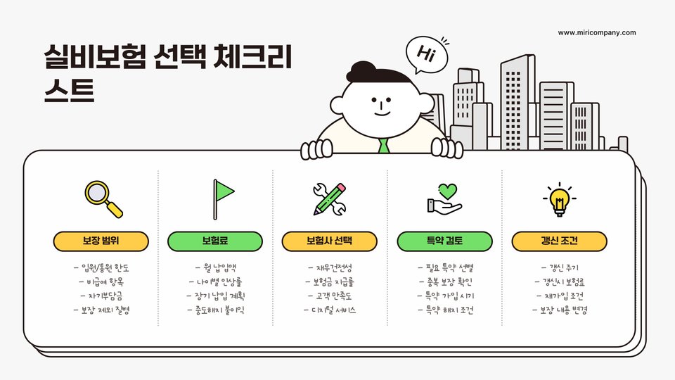 - 보험료, 보장 내용, 청구 절차를 고려해야 한다.