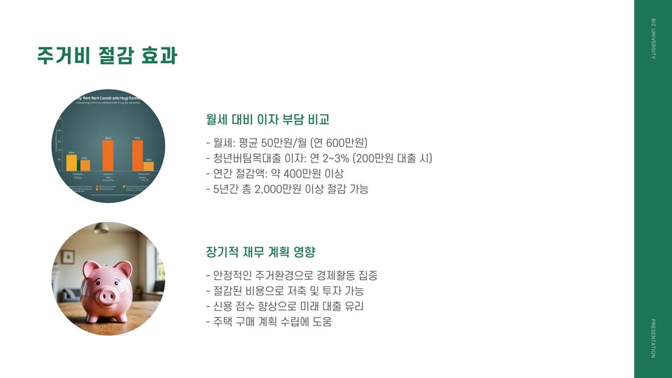 - 청년버팀목전세대출은 청년층의 주거 비용 부담 감소에 효과적입니다.