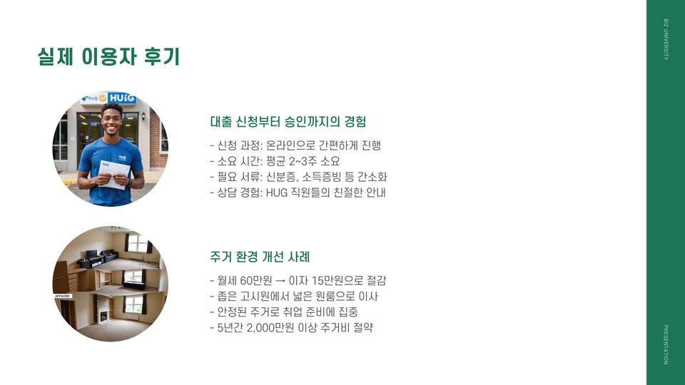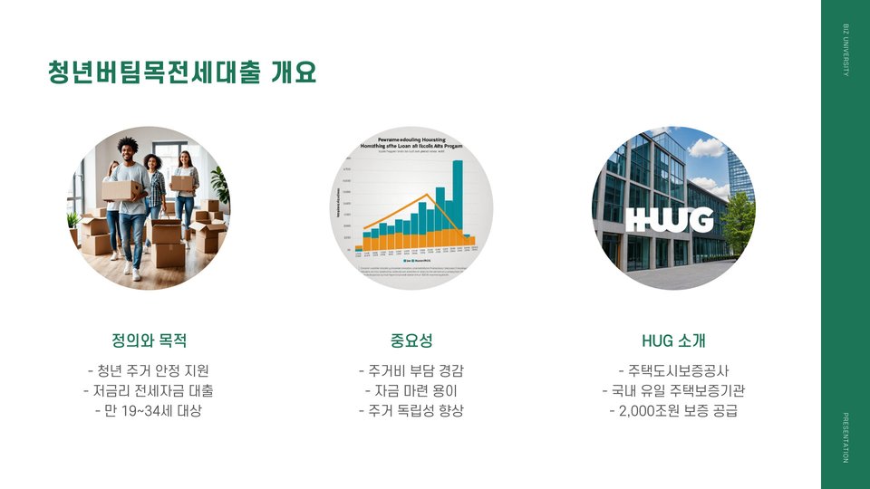 HUG는 주택도시보증공사로, 청년버팀목전세대출에서 중요한 역할을 합니다. HUG의 보증을 통해 대출자는 대출이자를 낮추고, 금융기관의 대출 심사를 보다 쉽게 통과할 수 있습니다. 이러한 보증은 청년들에게 안정적인 주거를 보장하며, 주택 시장에서도 긍정적인 영향을 미칩니다.