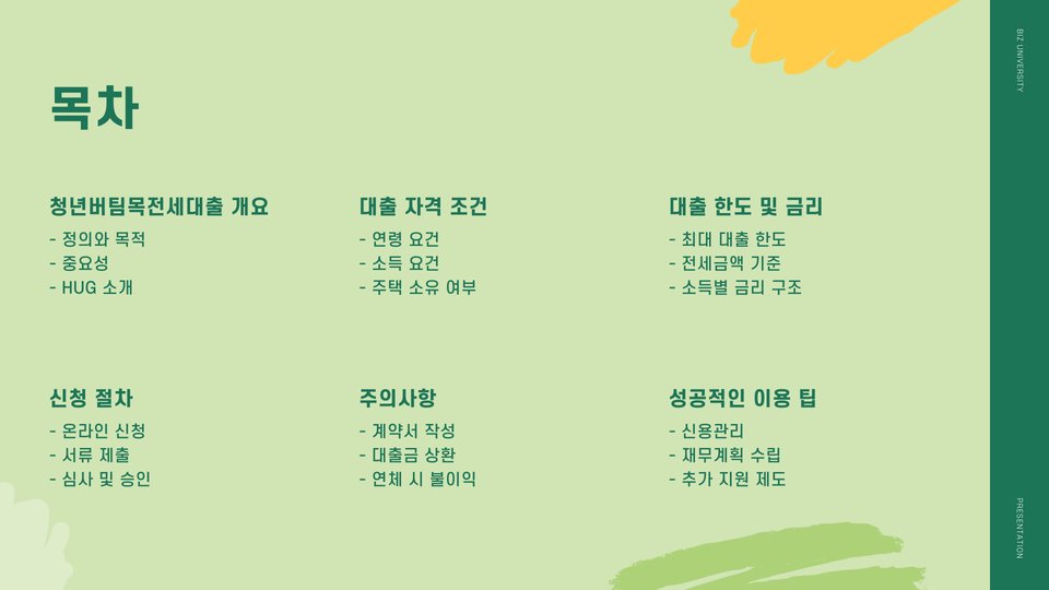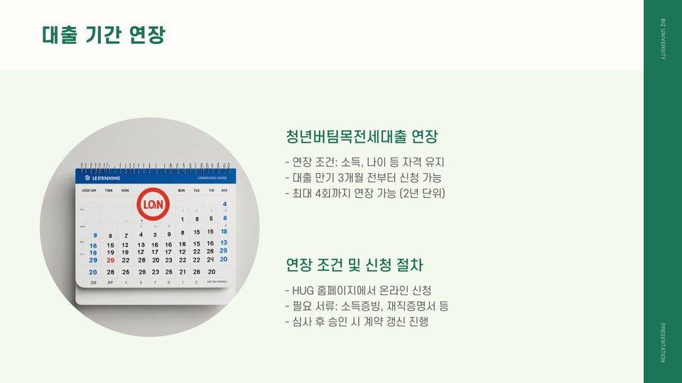 청년버팀목전세대출을 성공적으로 이용하기 위한 몇 가지 팁을 소개합니다. 첫째, 대출 조건을 제대로 이해하고, 자신의 상황에 맞는 상품을 선택하는 것이 중요합니다. 둘째, 필요한 서류는 미리 준비하여 심사 시간을 단축시키는 것이 좋습니다. 마지막으로, HUG의 상담 서비스를 이용하여 궁금한 사항을 해결하는 것도 좋은 방법입니다.