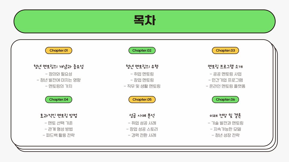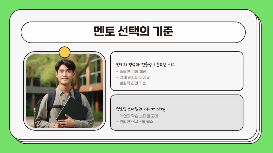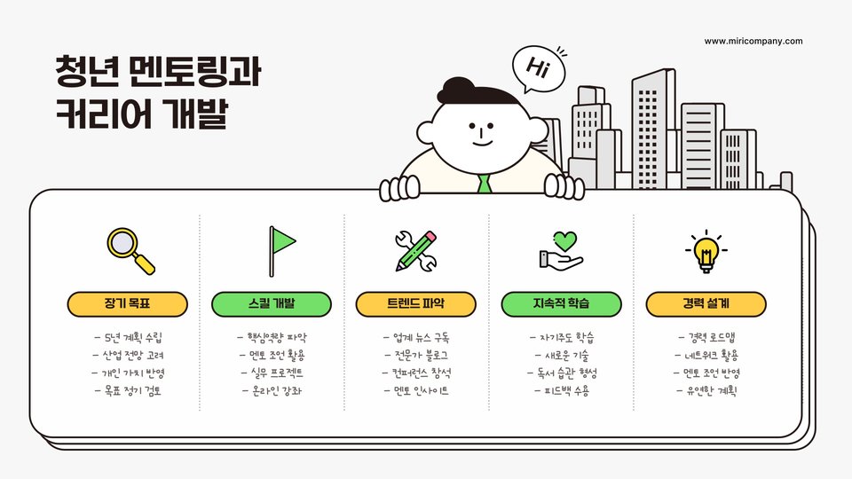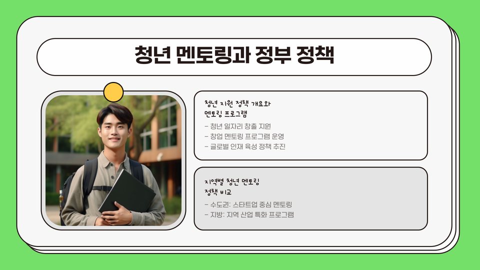 지난 몇 년간 멘토링 관계를 통해 얻은 경험은 항상 인생의 방향을 결정짓는 중요한 기회로 작용해 왔습니다. 그러므로, 청년 멘토링에 대한 이해를 깊이 하고, 필요한 자원으로 활용하여 더 밝은 미래를 설계해 나가기를 바랍니다.