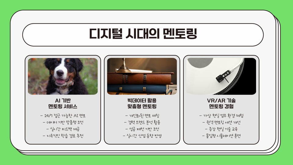 - 다양한 멘토링 프로그램 활용 가능