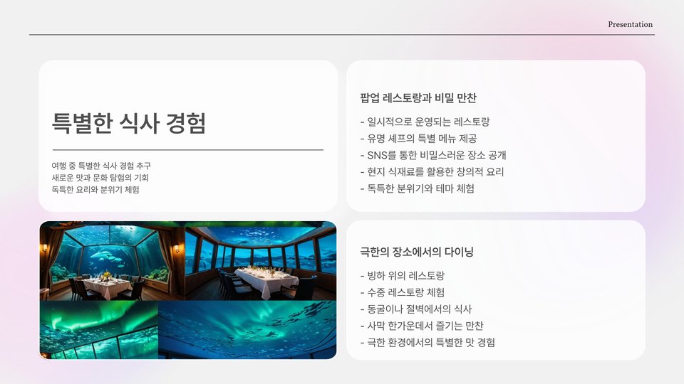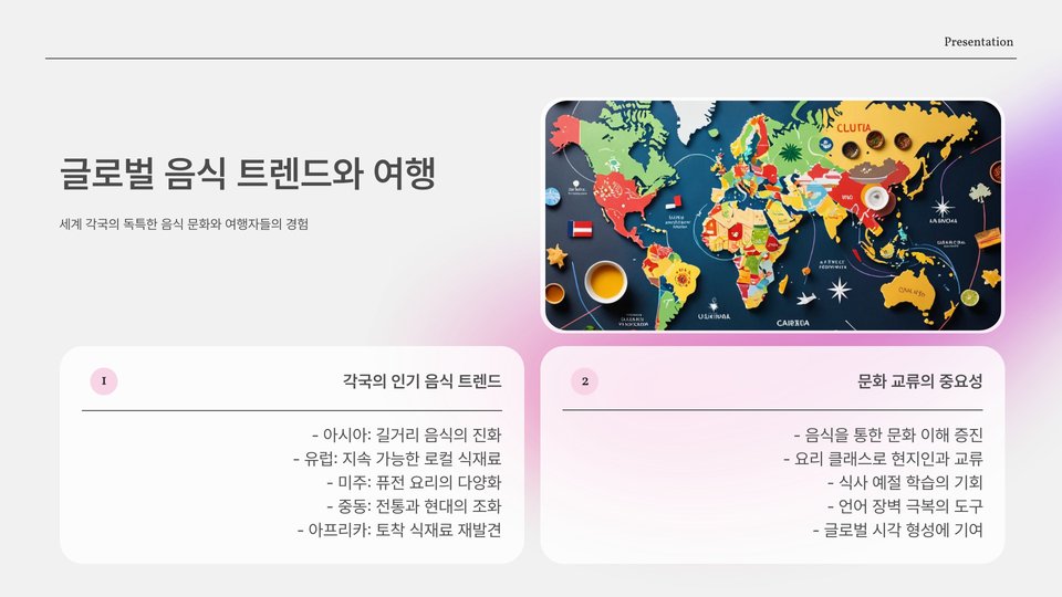 | 퓨전 요리 | 다양한 문화의 조화 |