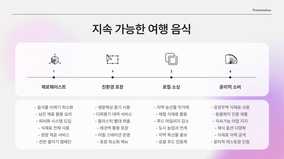 - 여행용 음식의 트렌드는 건강과 지속 가능성을 중시합니다.