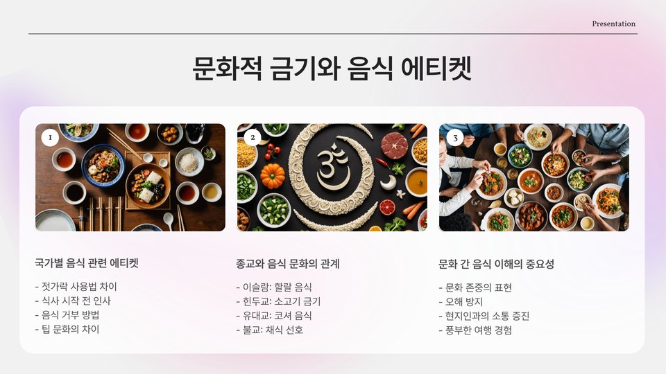여행지에서의 음식 선택은 단순히 배를 채우는 것이 아니라, 각 지역의 문화를 체험할 수 있는 중요한 요소로 자리매김했습니다. 지역 음식의 스토리를 이해하고, 그 지역의 생산자와 셰프가 어떤 방식으로 요리를 준비하는지를 경험함으로써, 여행의 의미를 더욱 깊게 할 수 있습니다.