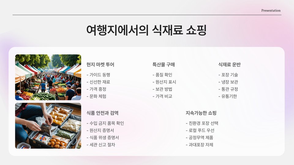 여행용 음식의 트렌드는 건강하고 지속 가능한 방향으로 변화하고 있으며, 각 지역의 특색 있는 맛을 경험하는 것이 중요한 요소로 떠오르고 있습니다. 이러한 변화는 여행의 질을 높여주고, 새로운 발견을 가능하게 합니다. 여행을 떠나기 전, 자신에게 맞는 여행용 음식을 미리 준비하고, 새로운 맛을 경험해 보세요. 여행은 단순한 이동이 아니라, 맛과 경험의 축제입니다.