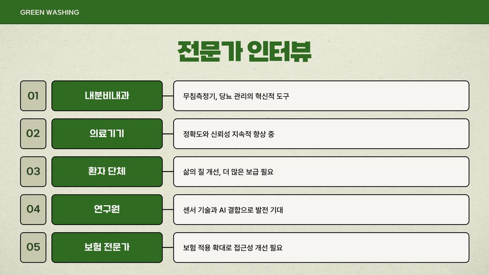 • 제품 A: 연속 혈당 모니터링 기능을 제공하며, 정확한 데이터 분석이 가능합니다.