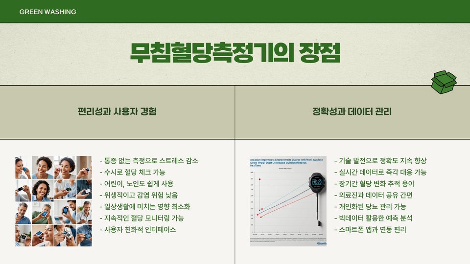 무침혈당측정기의 가장 큰 장점 중 하나는 사용의 편리함입니다. 안전하고 간편하게 혈당을 측정할 수 있으며, 통증이나 불편함이 없기 때문에 생활 속에서 더욱 쉽게 활용할 수 있습니다. 또한, 측정한 데이터는 앱을 통해 분석할 수 있어 개인의 혈당 패턴을 이해하는 데에도 큰 도움이 됩니다.