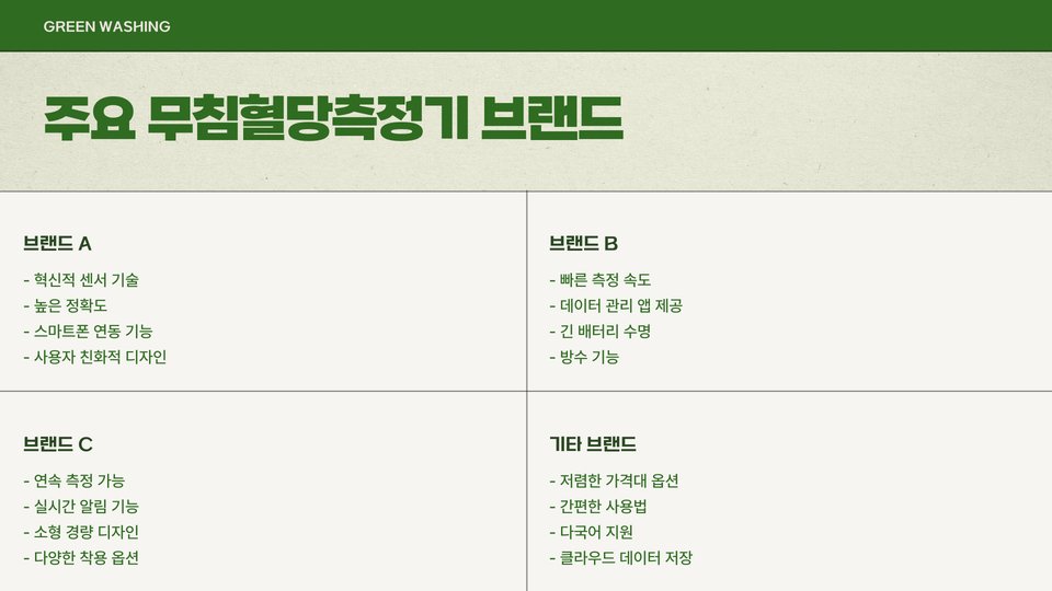 - 제품 A: 연속 혈당 모니터링 기능을 제공하며, 정확한 데이터 분석이 가능합니다.