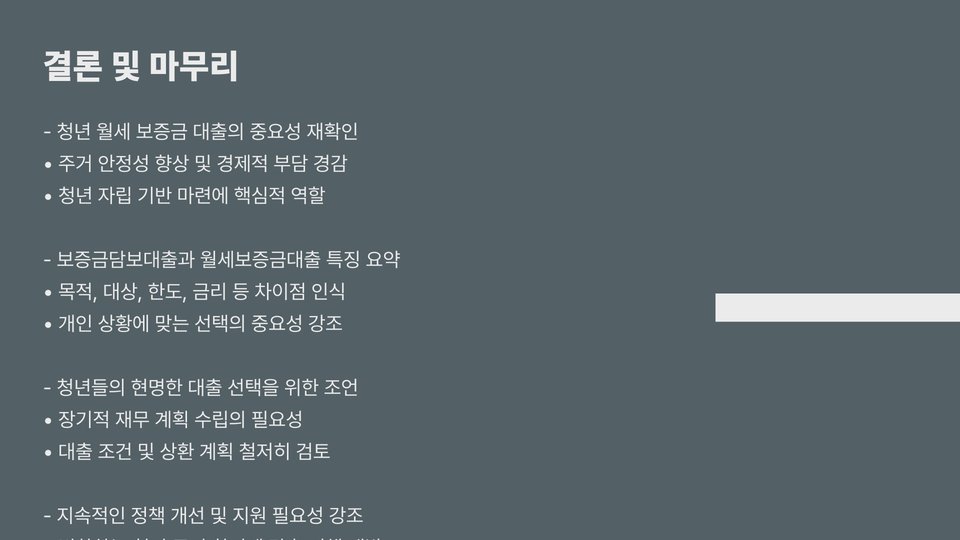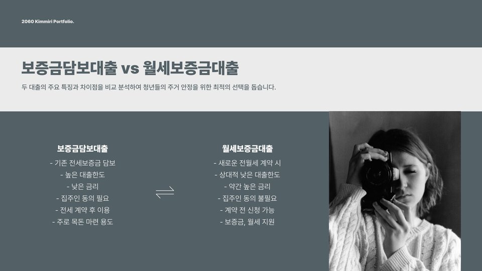청년들이 선택해야 할 대출 방식은 개인의 상황에 따라 다릅니다. 예를 들어, 안정적인 소득이 있는 경우 보증금담보대출을 고려해 볼 수 있습니다. 그러나 초기 자금이 부족하고, 월세를 바로 지불해야 하는 상황이라면 월세보증금대출이 더 적합할 것입니다. 또한, 주거 안정성을 위해 각 대출의 조건을 잘 비교하고, 전문가의 상담을 받는 것이 좋습니다.