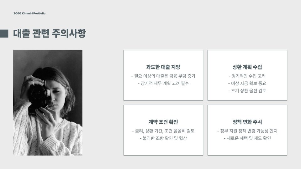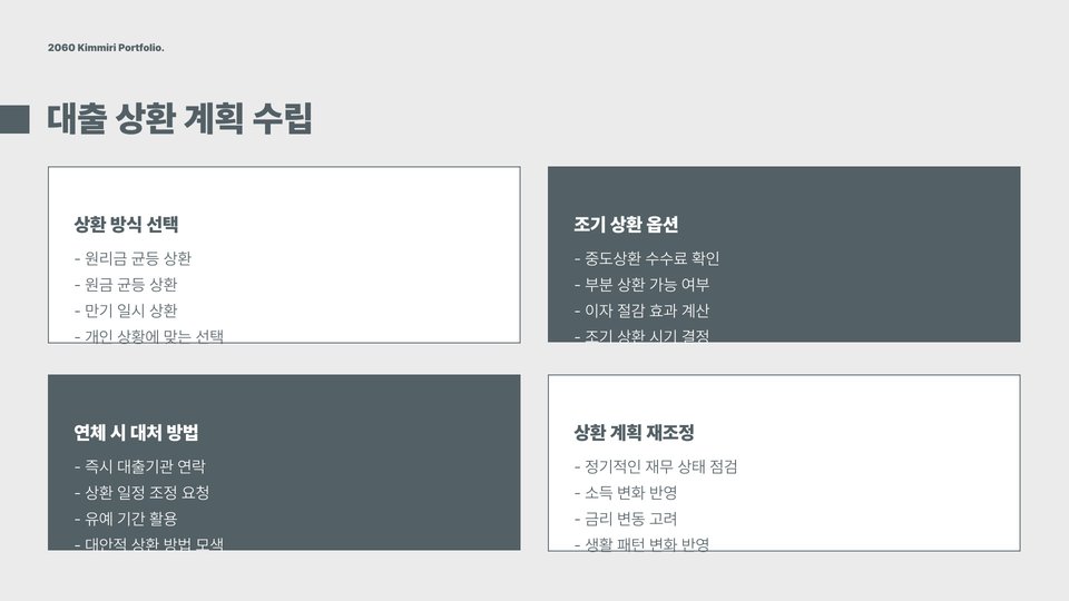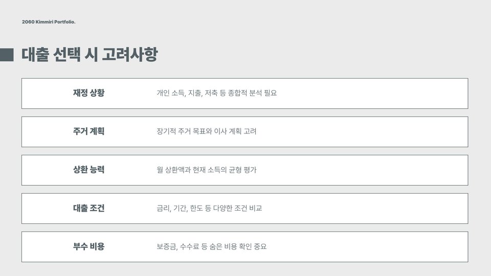- 각 대출 방식은 개인의 재정 상황에 따라 선택해야 함.