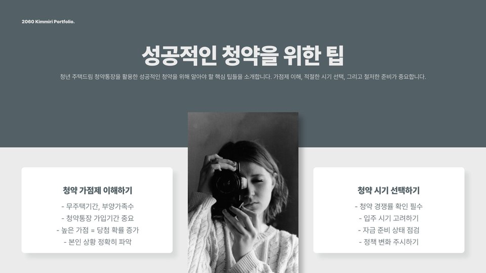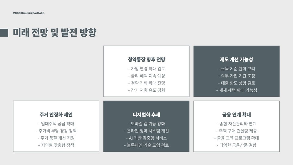 마지막으로, 청년 주택드림 청약통장은 단순히 저축통장이 아니라, 청년들이 주거 문제를 해결할 수 있는 적절한 장치로, 적립금으로 집을 마련할 수 있는 기회를 제공합니다. 이는 장기적으로 청년들이 자산 형성을 하는 데 큰 기여를 할 것입니다.