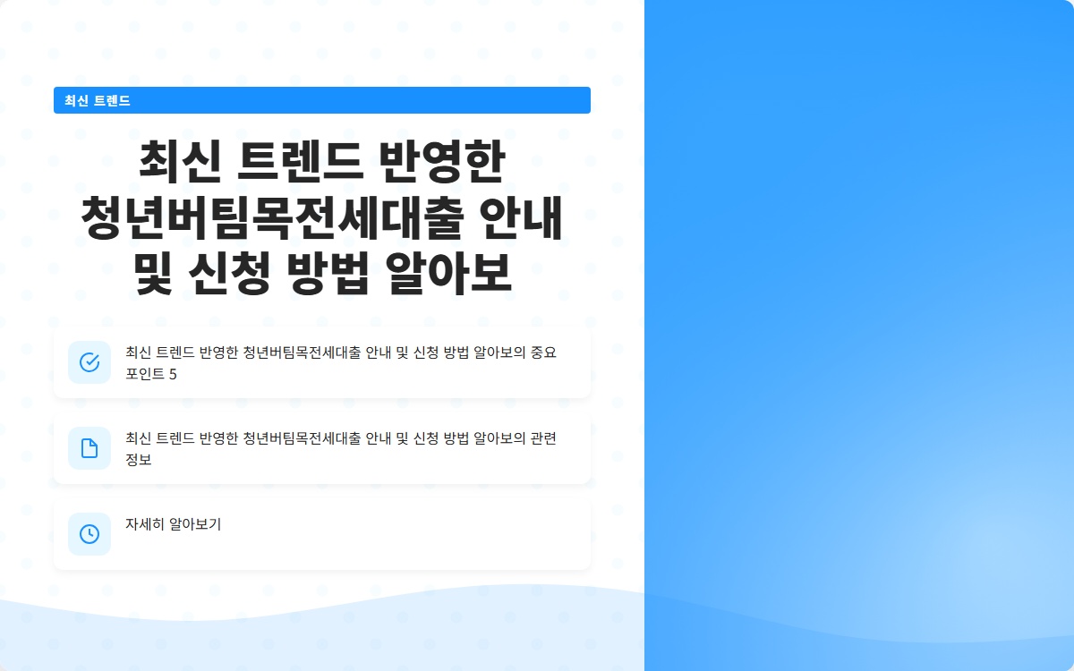 최신 트렌드 반영한 청년버팀목전세대출 안내 및 신청 방법 알아보