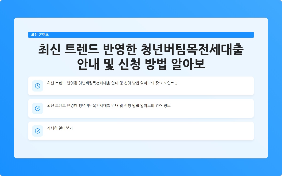최신 트렌드 반영한 청년버팀목전세대출 안내 및 신청 방법 알아보