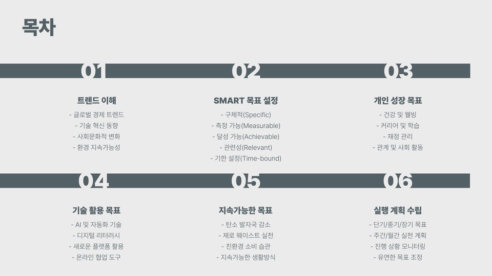 비록 목표 설정이 쉽지 않을 수 있지만, 적절한 계획과 실행을 통해 우리는 원하는 성과를 얻을 수 있는 가능성을 높일 수 있습니다. 2025년에는 자신에게 더욱 도전하고, 성장하는 한 해가 되기를 바랍니다.