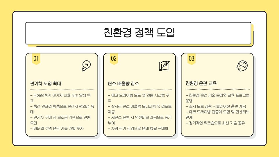 환경 문제에 대한 인식이 높아짐에 따라, k패스 택시는 지속 가능한 운영 전략을 채택해야 합니다. 전기차 및 하이브리드차 도입을 통해 탄소 배출을 줄이고, 에너지 효율성을 높이는 것이 필요합니다. 또한, 지속 가능한 비즈니스 모델을 개발하여 사회적 책임을 다하는 기업으로 자리매김해야 합니다.