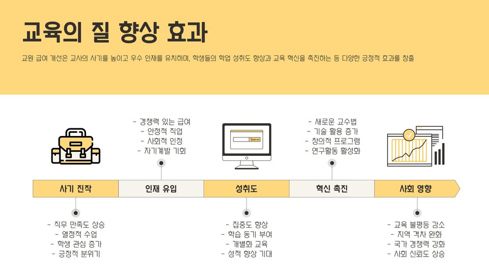 기본급이 인상되면 교사들은 보다 집중적으로 교육에 임할 수 있으며, 이는 학생들에게 긍정적인 영향을 미칠 것입니다. 특히, 교사들이 자신의 경력 개발에 투자할 여유를 가질 수 있게 됩니다.