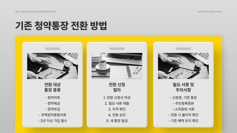 청약통장 전환은 다음과 같은 단계로 진행됩니다: