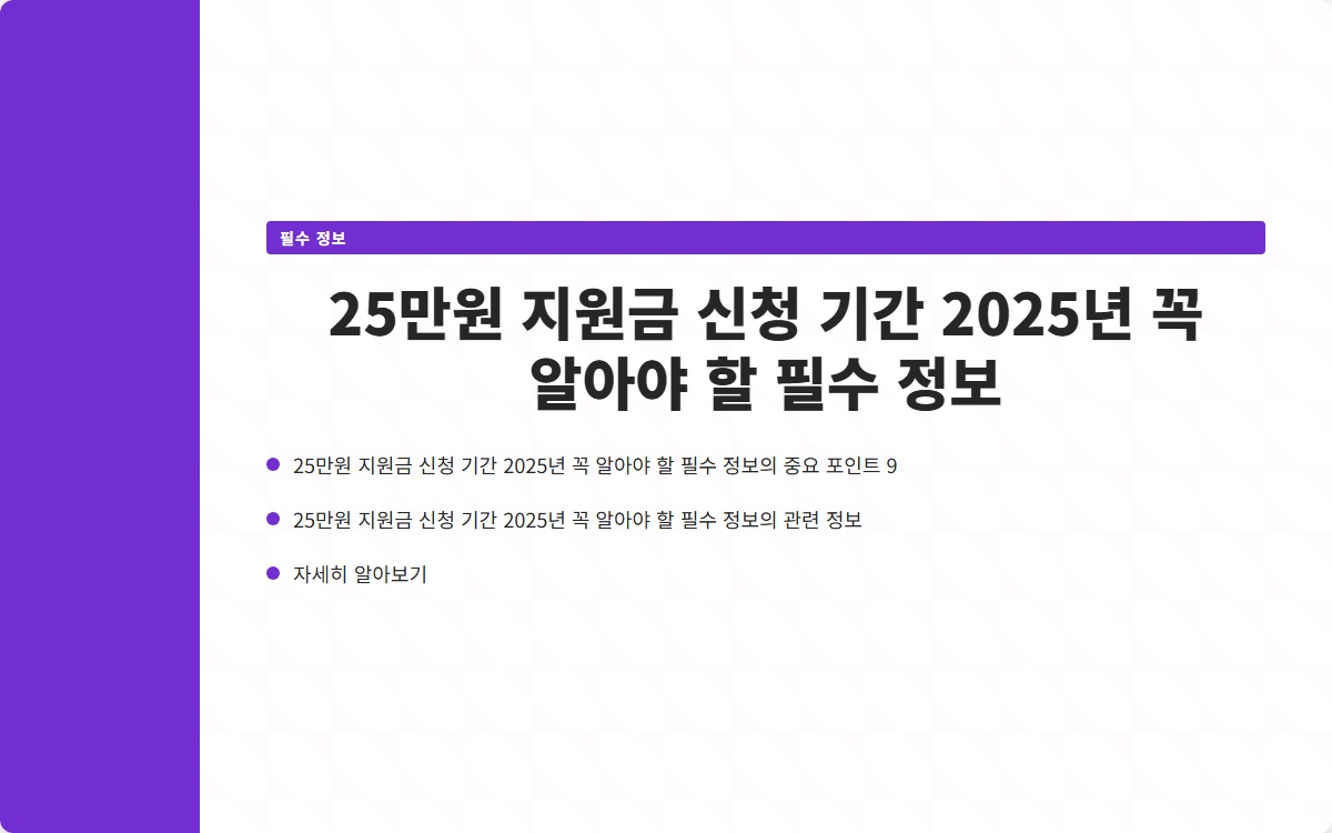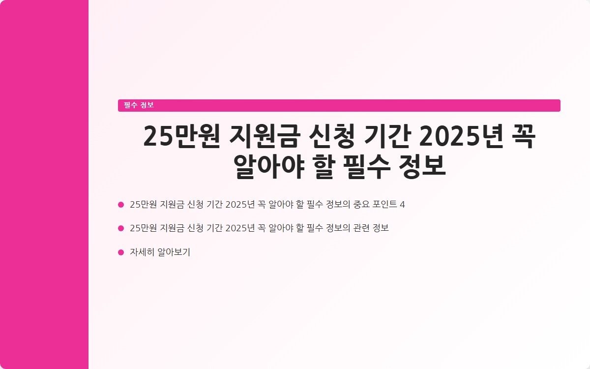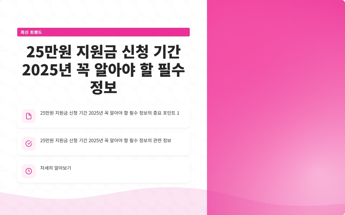25만원 지원금 신청 기간 2025년 꼭 알아야 할 필수 정보