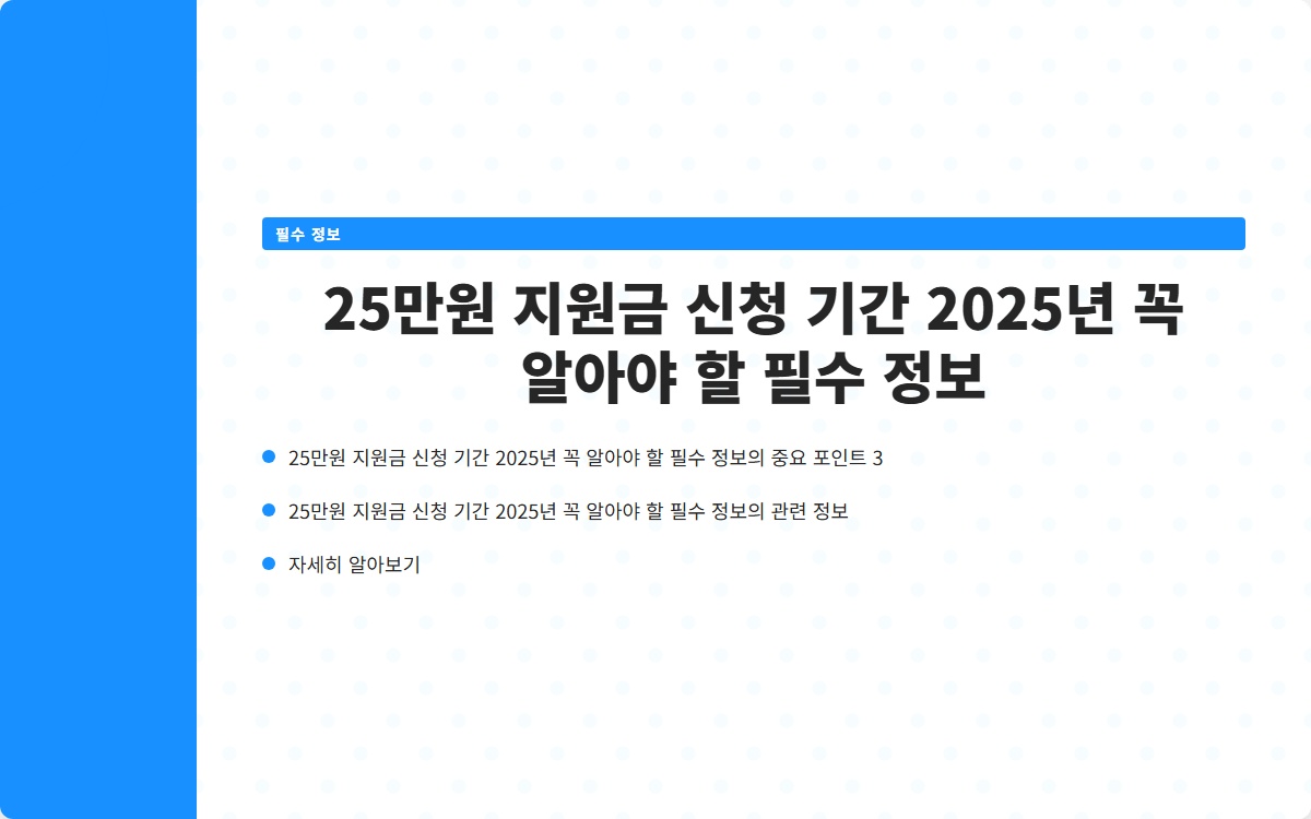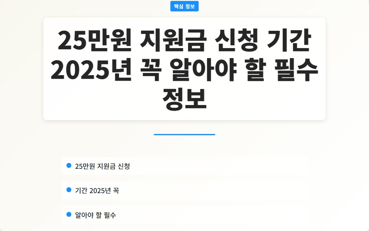 2025년 25만원 지원금 신청 기간, 꼭 알아야 할 필수 정보