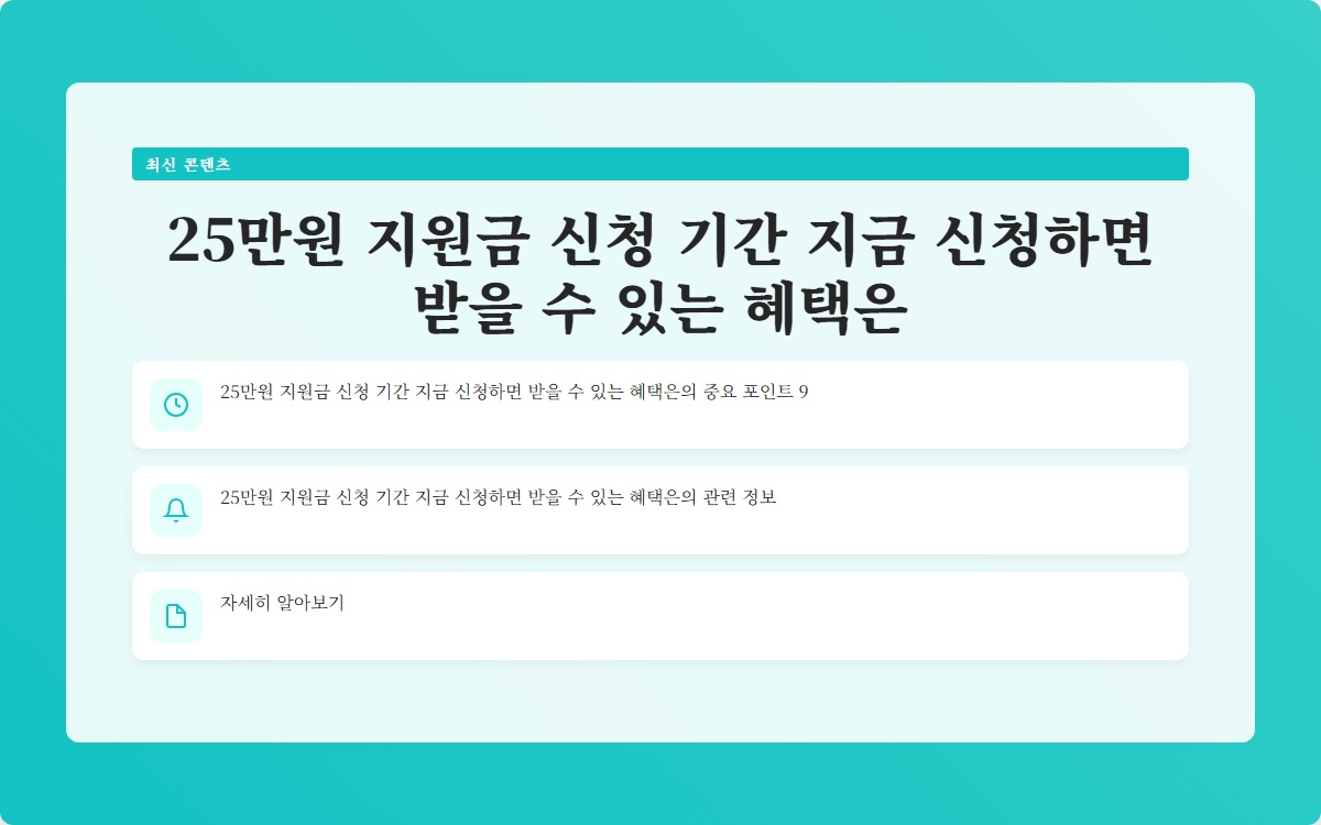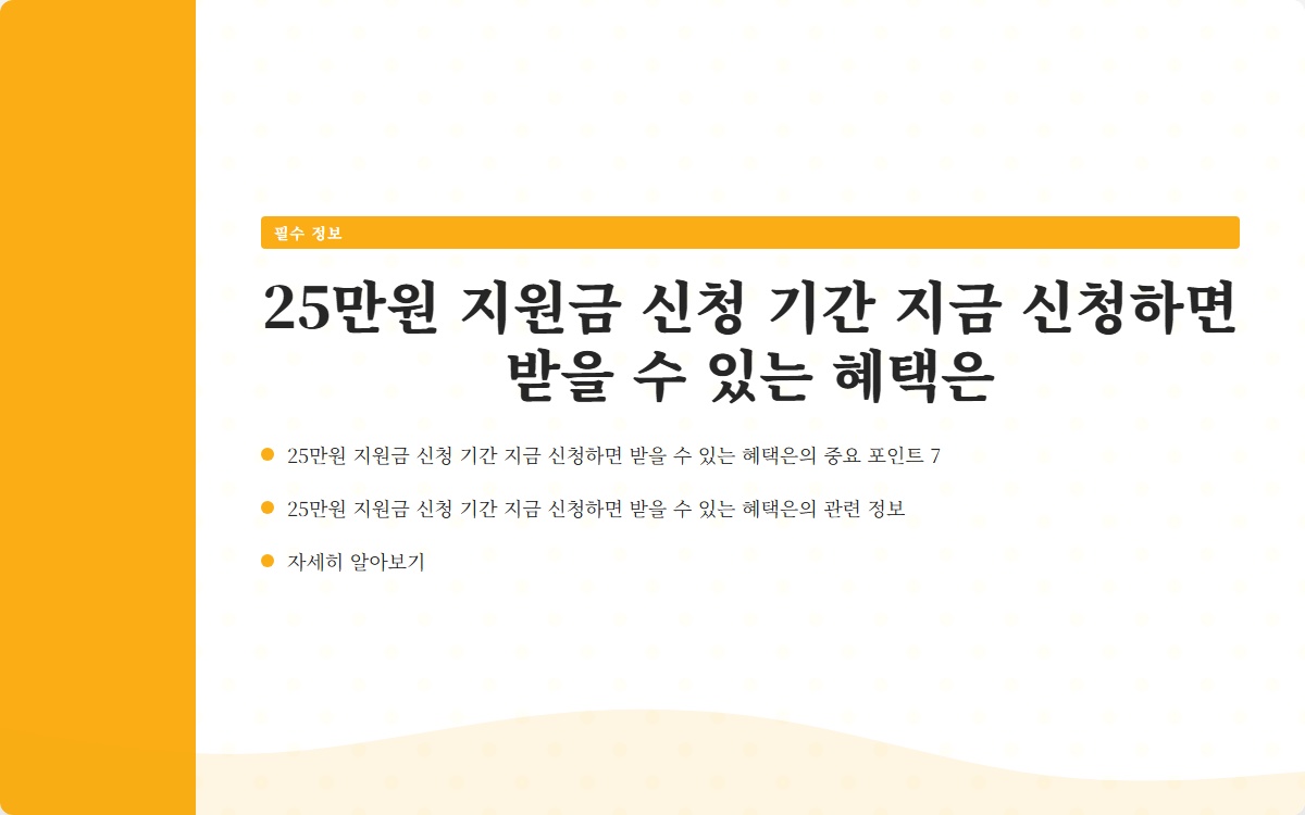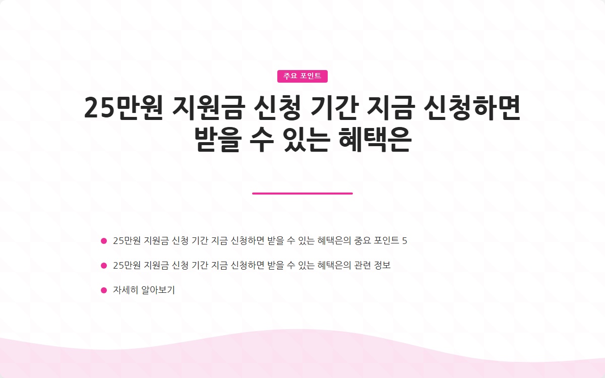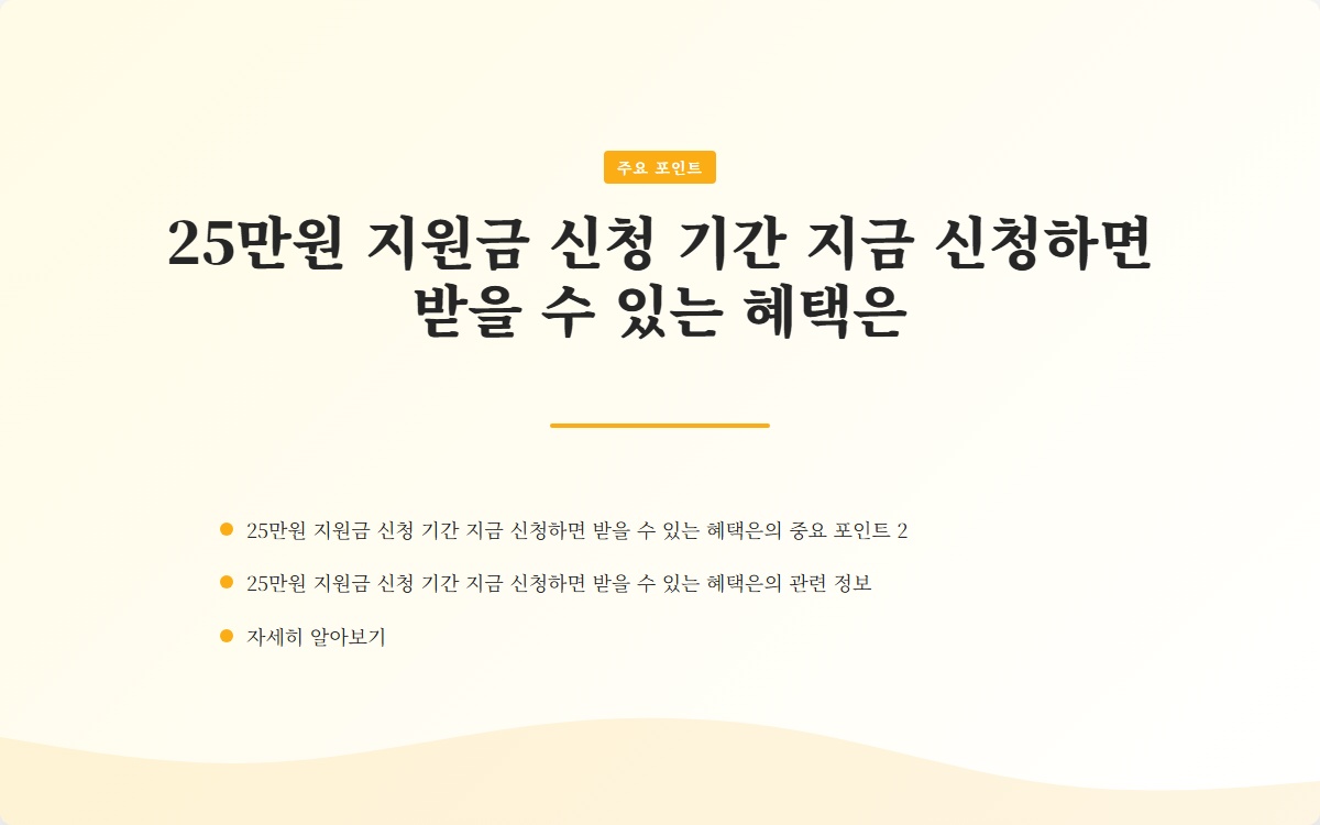 25만원 지원금 신청 기간 지금 신청하면 받을 수 있는 혜택은