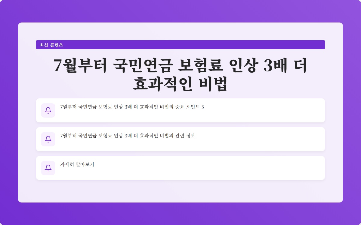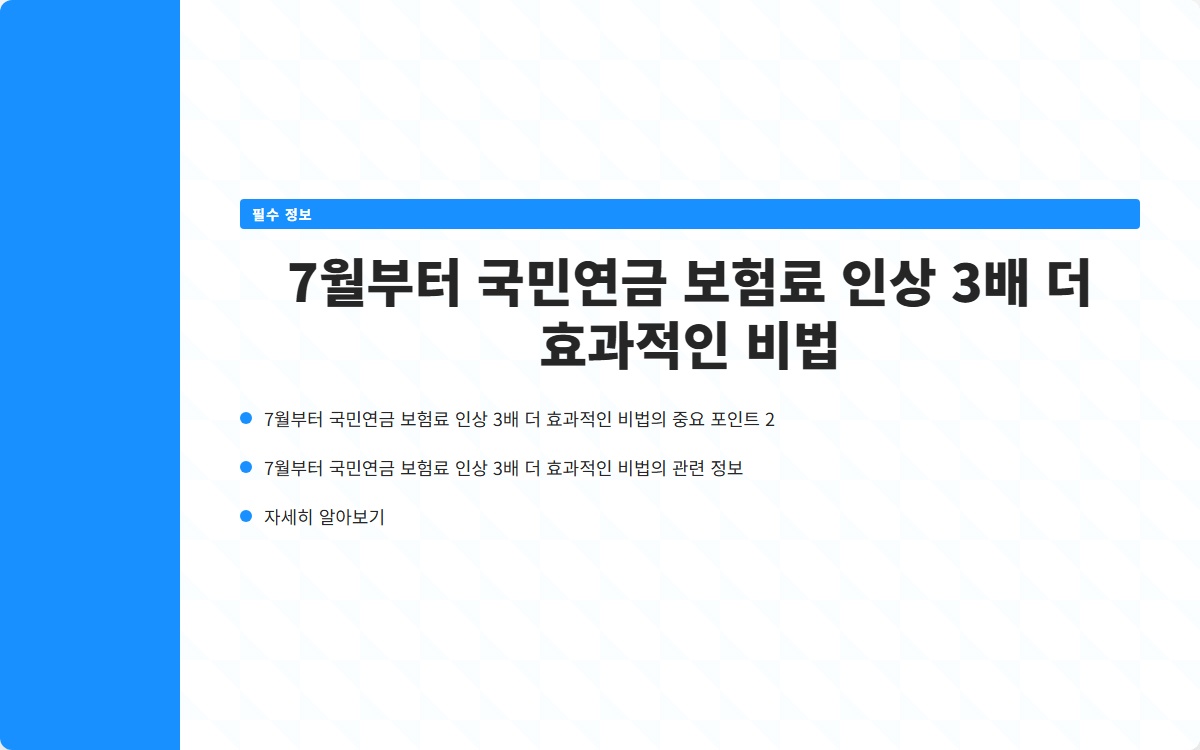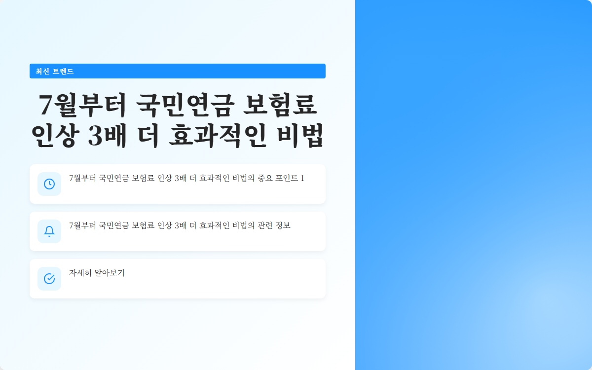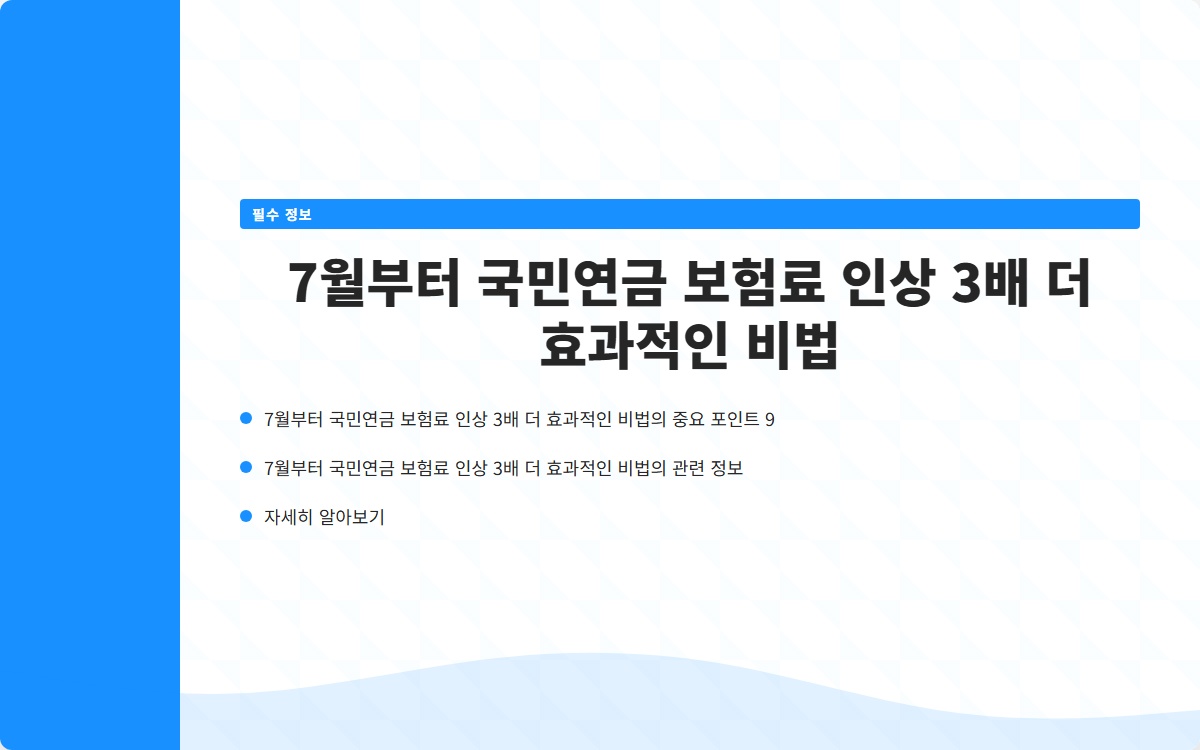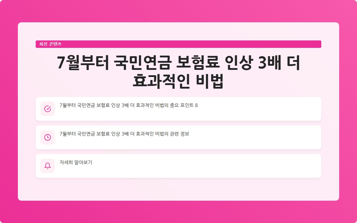 7월부터 국민연금 보험료 인상 3배 더 효과적인 비법 바로가기