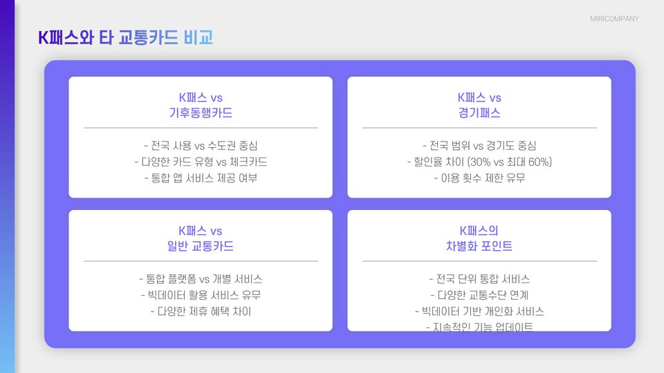 결론적으로, K패스 택시는 전통적인 택시 서비스와는 다른 접근 방식을 통해 서비스 시장에서의 경쟁력을 강화하고 있습니다. 이는 정확한 시장 조사와 소비자 니즈에 대한 철저한 분석을 바탕으로 가능해진 변화입니다.