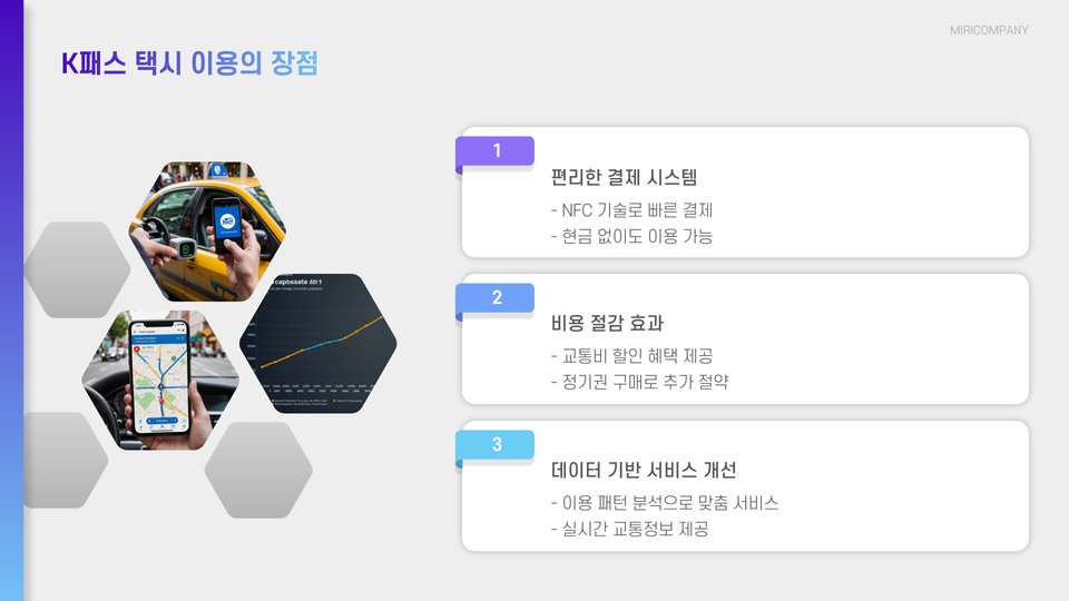 - K패스 택시는 전통적인 택시 서비스에서 디지털화된 혁신적인 서비스로 발전하였습니다.