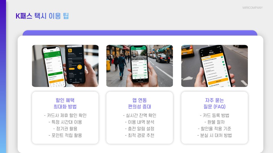 마지막으로, K패스 택시는 글로벌 시장으로의 확장을 통해 한국 외의 다양한 지역에서도 그 잠재력을 실현할 계획입니다. 택시 산업의 디지털화는 이제 시작에 불과하며, K패스 택시는 이 변화의 선두주자로 자리매김할 것입니다.