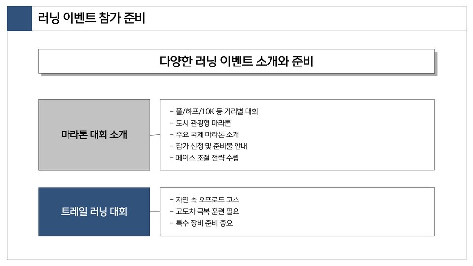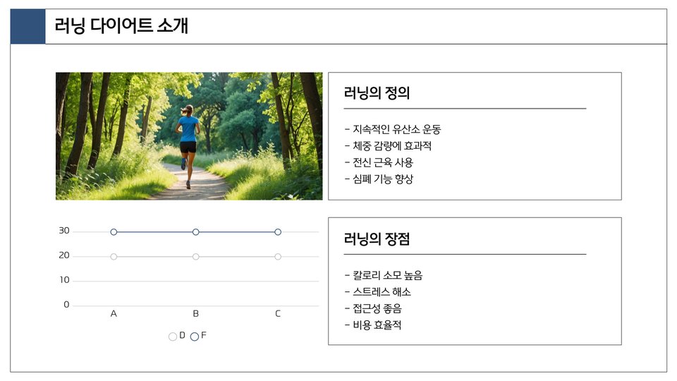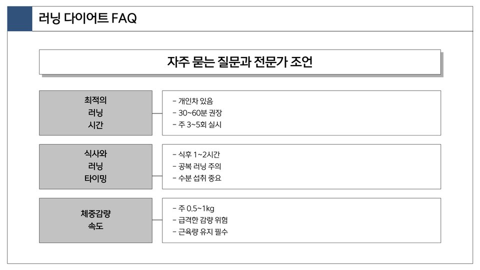 | 러닝 다이어트 | 체중 감소와 건강 증진을 목표로 하는 운동. |