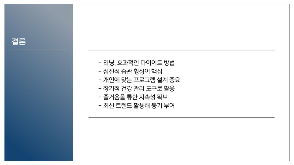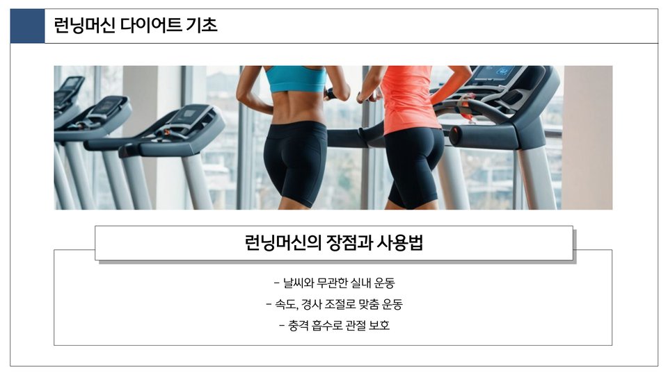 러닝 다이어트는 체중 감량뿐만 아니라, 전반적인 건강을 개선하는 데 중요한 역할을 합니다. 런닝머신을 활용한 다이어트는 효율적이고 지속 가능한 방법입니다. 목표를 설정하고, 규칙적인 운동과 건강한 식단을 병행하여 성공적인 다이어트를 이루어 보세요.