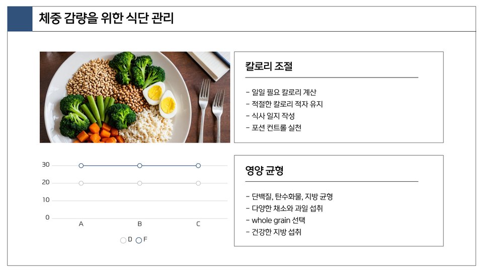 | 식단 관리 | 운동과 함께 건강한 식단을 유지하는 것. |