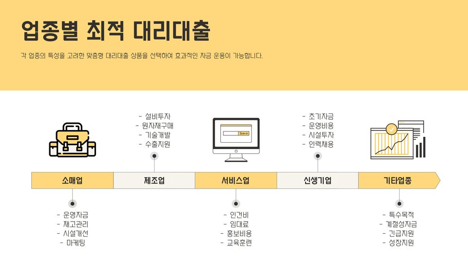 대리대출은 일반 은행 대출에 비해 신속하고 간편하게 자금을 조달할 수 있는 방법입니다. 이를 통해 소상공인은 사업 운영에 필요한 필수 자금을 쉽게 마련할 수 있으며, 보다 안정적으로 사업을 성장시키는 기반을 마련할 수 있습니다. 대리대출은 자금 부족으로 사업이 중단되는 불상사를 예방하며, 창업 초기의 어려움을 덜어줄 수 있습니다.